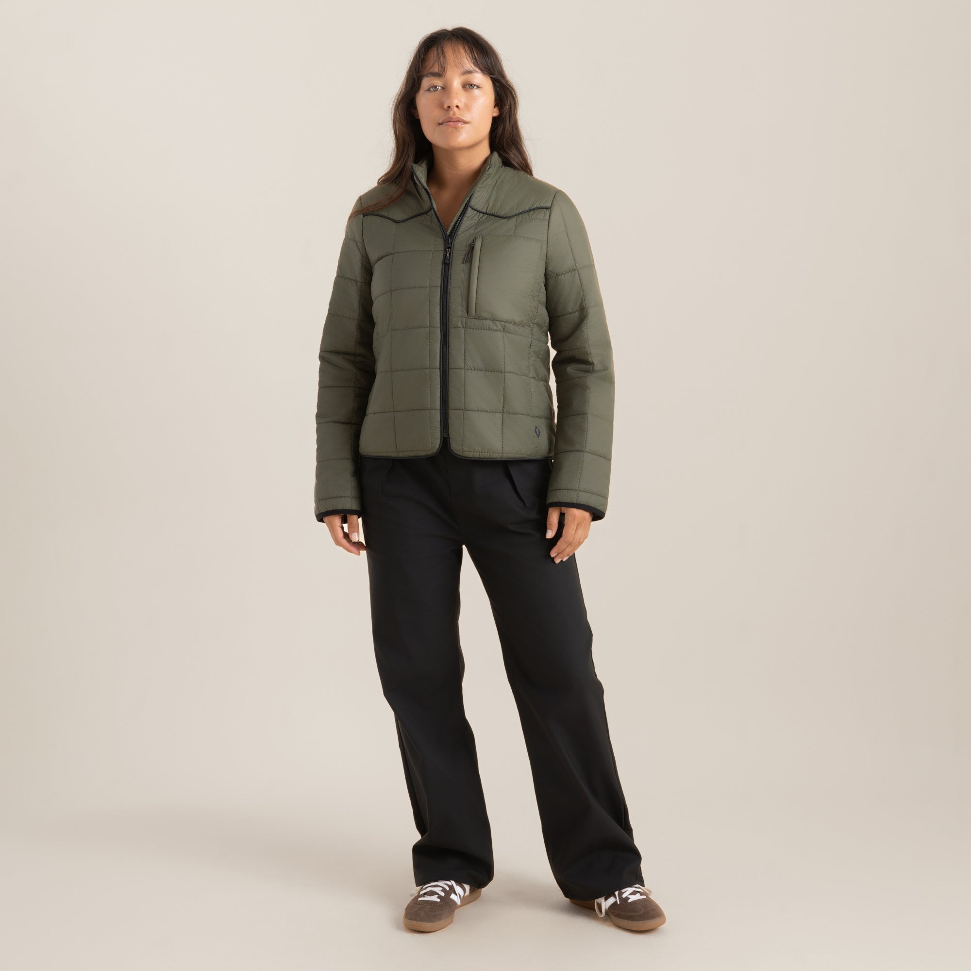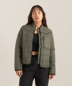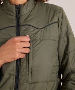 You know what they say—the devil’s in the details. And The Basecamp Layering Jacket is sure to deliver with wearable western details and box-stiched quilting throughout. Crafted from 100% Nylon, this lightweight zip jacket has 80g of PrimaLoft® insulation which is perfect for active pursuits. PrimaLoft® fill is a fantastic down feather alternative that is made of 100% recycled content, 60% of which uses ocean bound plastic. It is highly packable and amazing at trapping body heat, maintaining breathability, and repelling water providing thermal insulation even when wet. Your favorite new layer for warmth and versatility perfect to hit the open road.